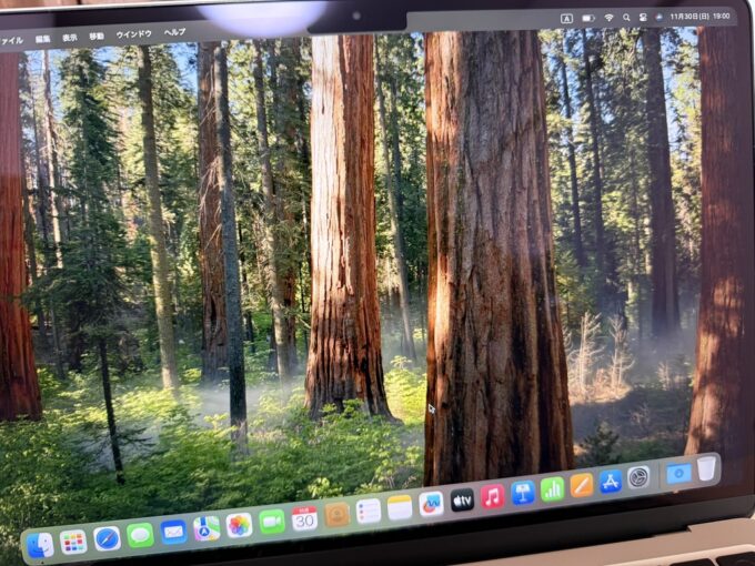Appleの壁紙といえば、iPhoneのホーム画面みたいに、ちょっと近未来感のあるオシャレな壁紙じゃないのーーーーー。なんで、よりによって木なのーーーー。これじゃまるでWindowsではないか。