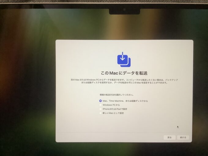 なんか本当にいろいろ聞かれましたが、後からでも設定できるところは飛ばしたりしつつ、無事完了!さて、いよいよ私のMacBook Airのデスクトップが出てくるよ!と、ワクワクしながら待っていたのですが