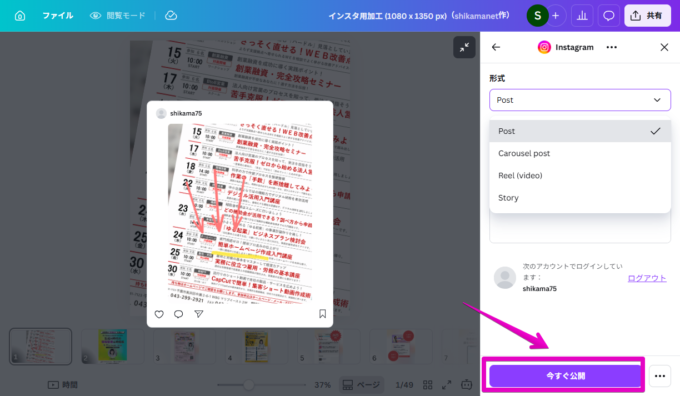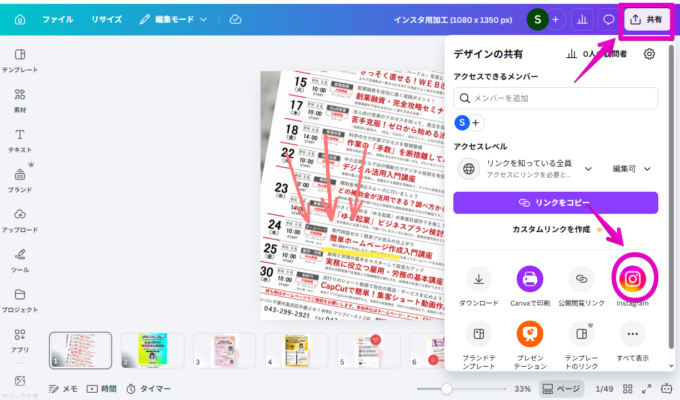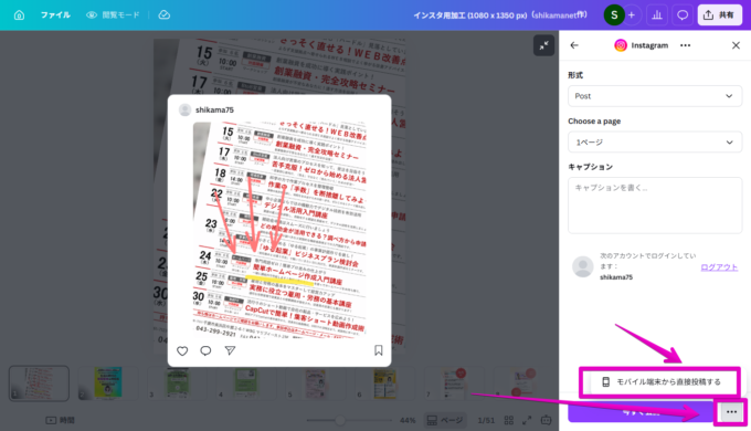 CanvaからInstagramに投稿する方法
